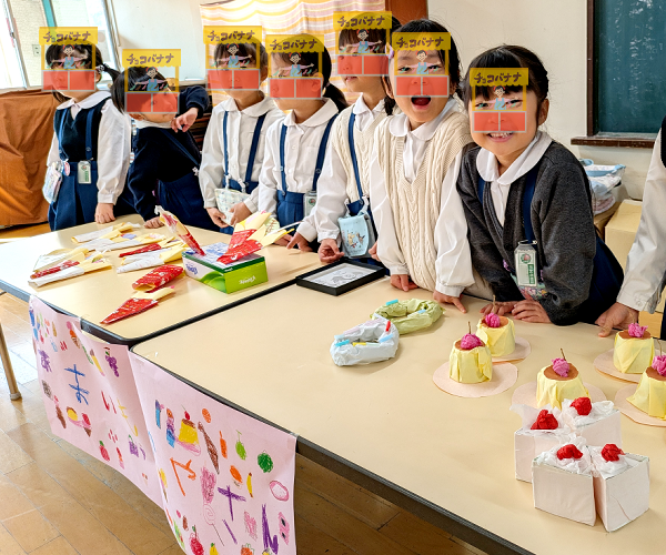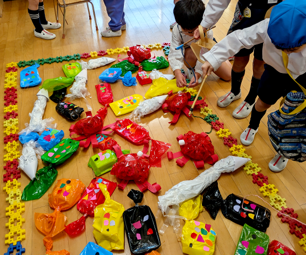 子どもたちが廃材を使って商品を作り、お店屋さんごっこをして遊びました。