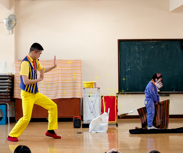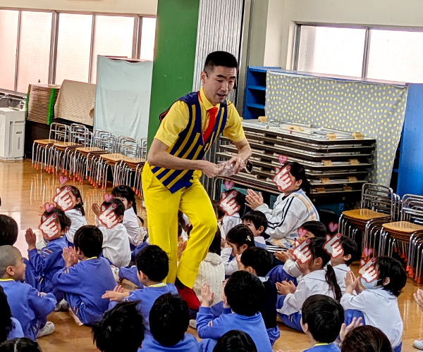 流れるような連続マジックと園児と協力して行うマジックが交互に続く、緩急入り混じったショーでとても楽しかったです。