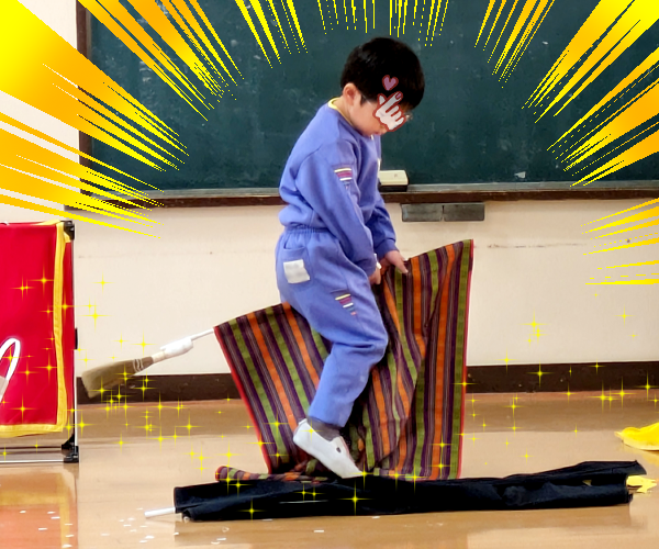 インパクトが強くて観ている子どもたちの中に怯える子が。笑